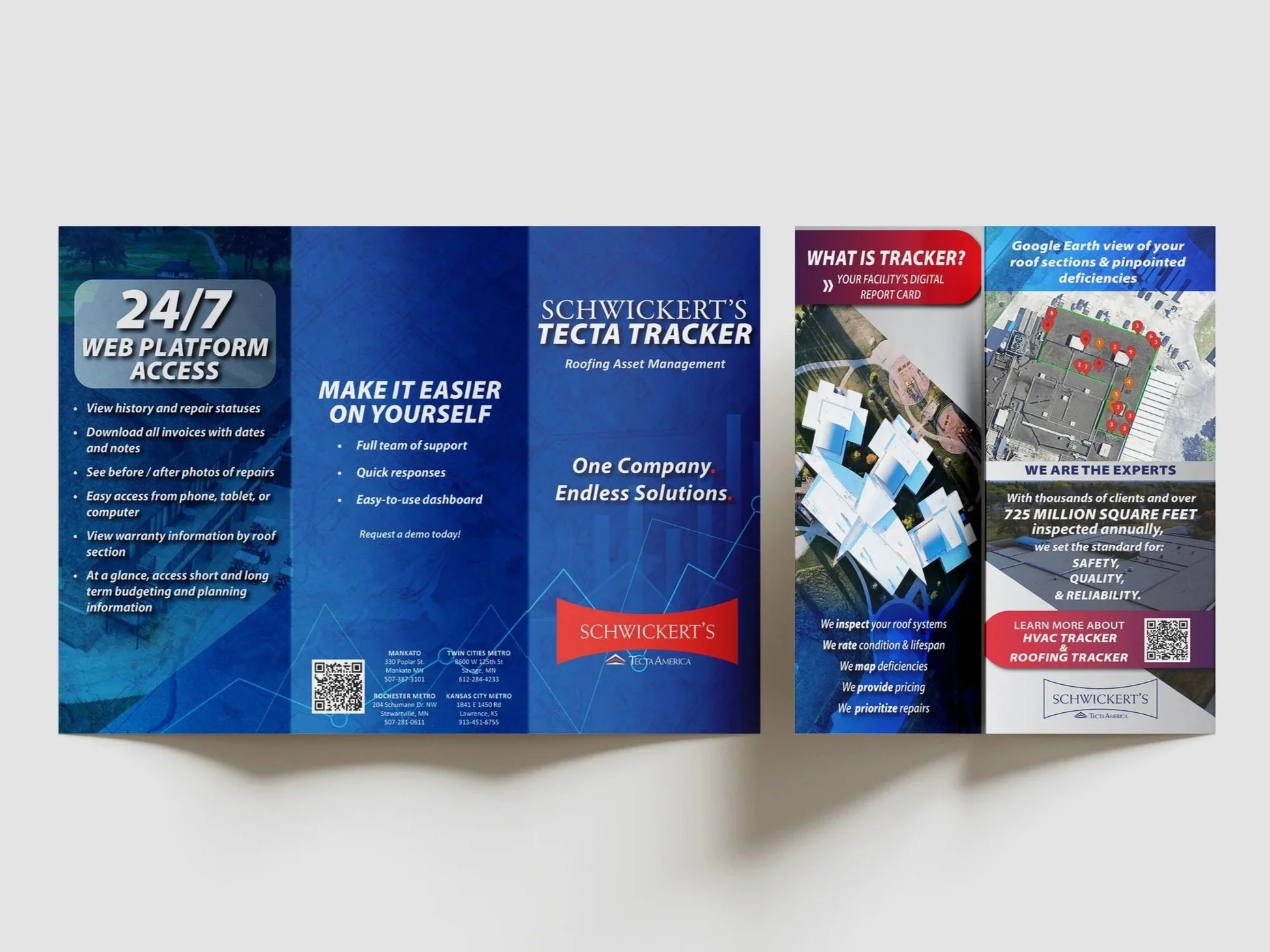One of the biggest services Schwickert’s offers that the business development shares with clients is the asset management program, Tecta Tracker. This trifold features a brief overview of this easy-to-use online platform. This trifold is paired with various sales sheets that offer a more in-depth look at the services.